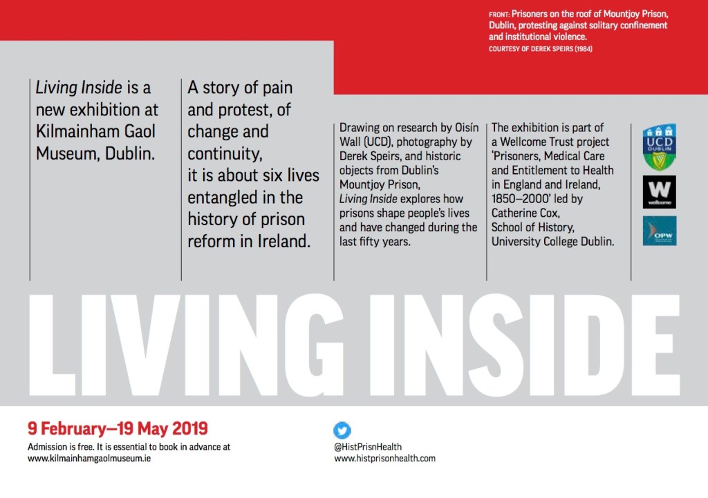 Drawing on Dr Oisín Wall’s research on the history of prison reform organisations in Ireland, using both historical objects and the work of photojournalist Derek Speirs, Living Inside explores how the Irish prison system has changed since the 1960s. It tells the stories of six people whose experiences speak to aspects of Irish prison history, from prisoners’ protests against unhealthy living conditions to the psychological strain faced by prison officers.